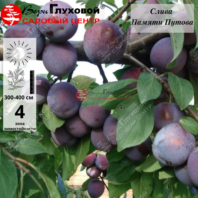 Каждое дерево приносит от 10 до 12 кг урожая. Срок хранения достигает 10 дней, уровень транспортабельности средний. Слива «Памяти Путова» считается универсальным сортом, часто используется для изготовления консервации, наливок и кондитерских изделий (пастила, мармелад и др.)."